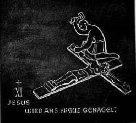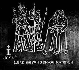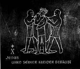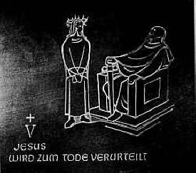 Da führten sie Jesus von Kaiphas zum Prätorium; es war früh am Morgen. Und sie gingen nicht hinein, damit sie nicht unrein würden, sondern das Passamahl essen könnten. Da kam Pilatus zu ihnen heraus und fragte: Was für eine Klage bringt ihr gegen diesen Menschen vor? Sie antworteten und sprachen zu ihm: Wäre dieser nicht ein Übeltäter, wir hätten ihn dir nicht überantwortet. Da sprach Pilatus zu ihnen: So nehmt ihr ihn hin und richtet ihn nach eurem Gesetz. Da sprachen die Juden zu ihm: Wir dürfen niemand töten. So sollte das Wort Jesu erfüllt werden, das er gesagt hatte, um anzuzeigen, welchen Todes er sterben würde. Da ging Pilatus wieder hinein ins Prätorium und rief Jesus und fragte ihn: Bist du der König der Juden? Jesus antwortete: Sagst du das von dir aus, oder haben dir's andere über mich gesagt? Pilatus antwortete: Bin ich ein Jude? Dein Volk und die Hohenpriester haben dich mir überantwortet. Was hast du getan? Jesus antwortete: Mein Reich ist nicht von dieser Welt. Wäre mein Reich von dieser Welt, meine Diener würden darum kämpfen, daß ich den Juden nicht überantwortet würde; nun aber ist mein Reich nicht von dieser Welt. Da fragte ihn Pilatus: So bist du dennoch ein König? Jesus antwortete: Du sagst es, ich bin ein König. Ich bin dazu geboren und in die Welt gekommen, daß ich die Wahrheit bezeugen soll. Wer aus der Wahrheit ist, der hört meine Stimme. Spricht Pilatus zu ihm: Was ist Wahrheit? Und als er das gesagt hatte, ging er wieder hinaus zu den Juden und spricht zu ihnen: Ich finde keine Schuld an ihm. Es besteht aber die Gewohnheit bei euch, daß ich euch einen zum Passafest losgebe; wollt ihr nun, daß ich euch den König der Juden losgebe? Da schrien sie wiederum: Nicht diesen, sondern Barabbas! Barabbas aber war ein Räuber. Da nahm Pilatus Jesus und ließ ihn geißeln. Und die Soldaten flochten eine Krone aus Dornen und setzten sie auf sein Haupt und legten ihm ein Purpurgewand an und traten zu ihm und sprachen: Sei gegrüßt, König der Juden! und schlugen ihm ins Gesicht. Da ging Pilatus wieder hinaus und sprach zu ihnen: Seht, ich führe ihn heraus zu euch, damit ihr erkennt, daß ich keine Schuld an ihm finde. Und Jesus kam heraus und trug die Dornenkrone und das Purpurgewand. Und Pilatus spricht zu ihnen: Seht, welch ein Mensch! Als ihn die Hohenpriester und die Knechte sahen, schrien sie: Kreuzige! kreuzige! Pilatus spricht zu ihnen: Nehmt ihr ihn hin und kreuzigt ihn, denn ich finde keine Schuld an ihm. Die Juden antworteten ihm: Wir haben ein Gesetz, und nach dem Gesetz muß er sterben, denn er hat sich selbst zu Gottes Sohn gemacht. Als Pilatus dies Wort hörte, fürchtete er sich noch mehr und ging wieder hinein in das Prätorium und spricht zu Jesus: Woher bist du? Aber Jesus gab ihm keine Antwort. Da sprach Pilatus zu ihm: Redest du nicht mit mir? Weißt du nicht, daß ich Macht habe, dich loszugeben, und Macht habe, dich zu kreuzigen? Jesus antwortete: Du hättest keine Macht über mich, wenn es dir nicht von oben her gegeben wäre. Darum: der mich dir überantwortet hat, der hat größere Sünde. Von da an trachtete Pilatus danach, ihn freizulassen. Die Juden aber schrien: Läßt du diesen frei, so bist du des Kaisers Freund nicht; denn wer sich zum König macht, der ist gegen den Kaiser. Als Pilatus diese Worte hörte, führte er Jesus heraus und setzte sich auf den Richterstuhl an der Stätte, die da heißt Steinpflaster, auf hebräisch Gabbata. Es war aber am Rüsttag für das Passafest um die sechste Stunde. Und er spricht zu den Juden: Seht, das ist euer König! Sie schrien aber: Weg, weg mit dem! Kreuzige ihn! Spricht Pilatus zu ihnen: Soll ich euren König kreuzigen? Die Hohenpriester antworteten: Wir haben keinen König als den Kaiser. Da überantwortete er ihnen Jesus, daß er gekreuzigt würde.