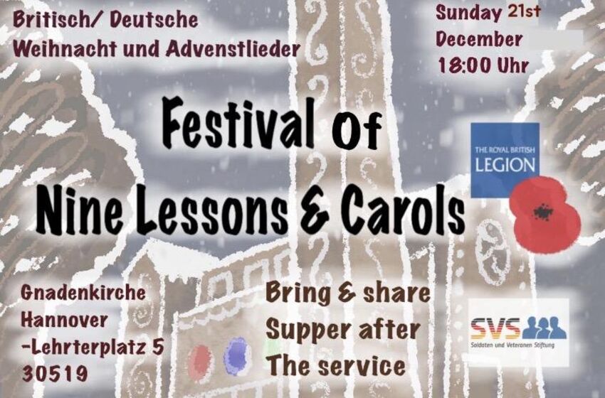 Sie sind herzlich eingeladen die Gottesdienste mit uns zu feiern! A Festival of Nine Lessons and Carols Englisch-Deutsche Weihnacht mit Posaunenchor und Orgelmusik, Rev. R. Downes, Pfr. H. ...